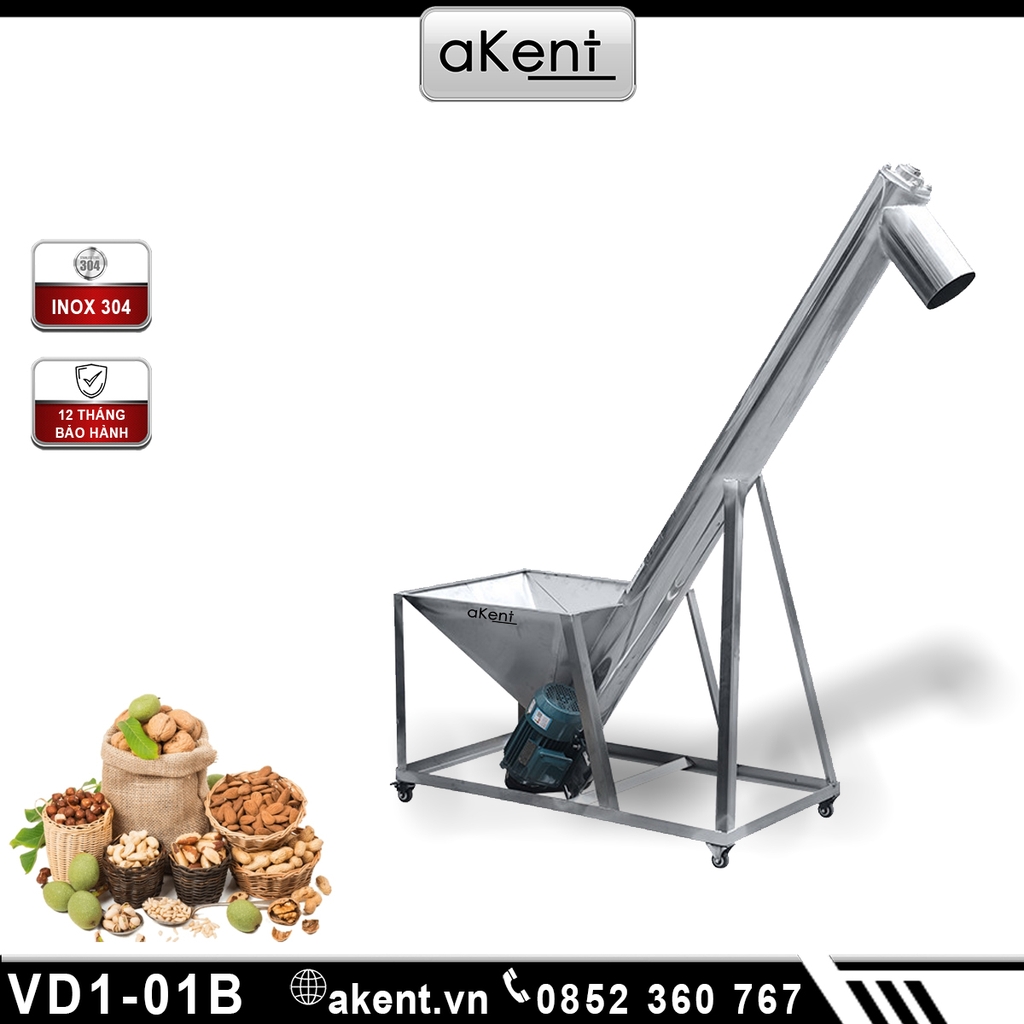 MÁY CẤP LIỆU DẠNG HẠT BỘT TRỤC VÍT NGHIÊNG 45 ĐỘ 1 VÒI THÉP KHÔNG GỈ VD1-01B