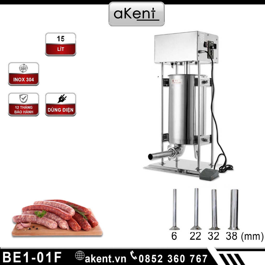 Máy đùn xúc xích dùng điện 15 lít sẽ giải quyết giúp bạn biến công việc trở nên nhanh chóng và thuận tiện hơn. Nếu trước kia, làm thủ công 1h chỉ làm được vài kg xúc xích, thì với các loại máy đùn xúc xích tại aKent công suất có thể lên đến gần 15 kg/mẻ và 1 giờ khoảng được 80 kg/h.