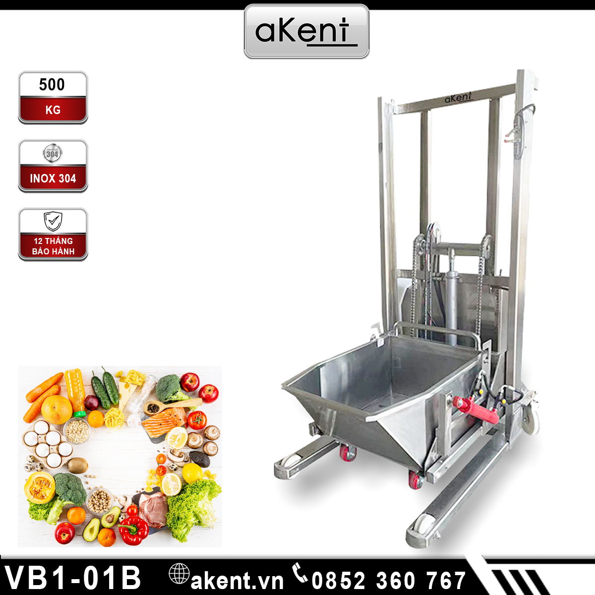 XE ĐẨY CHUYỂN THỰC PHẨM 500 KG NÂNG ĐIỆN TÍCH HỢP KHÍ NÉN VB1-01B